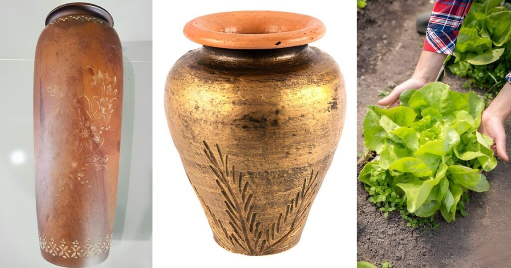 • Pottery shaped by hand